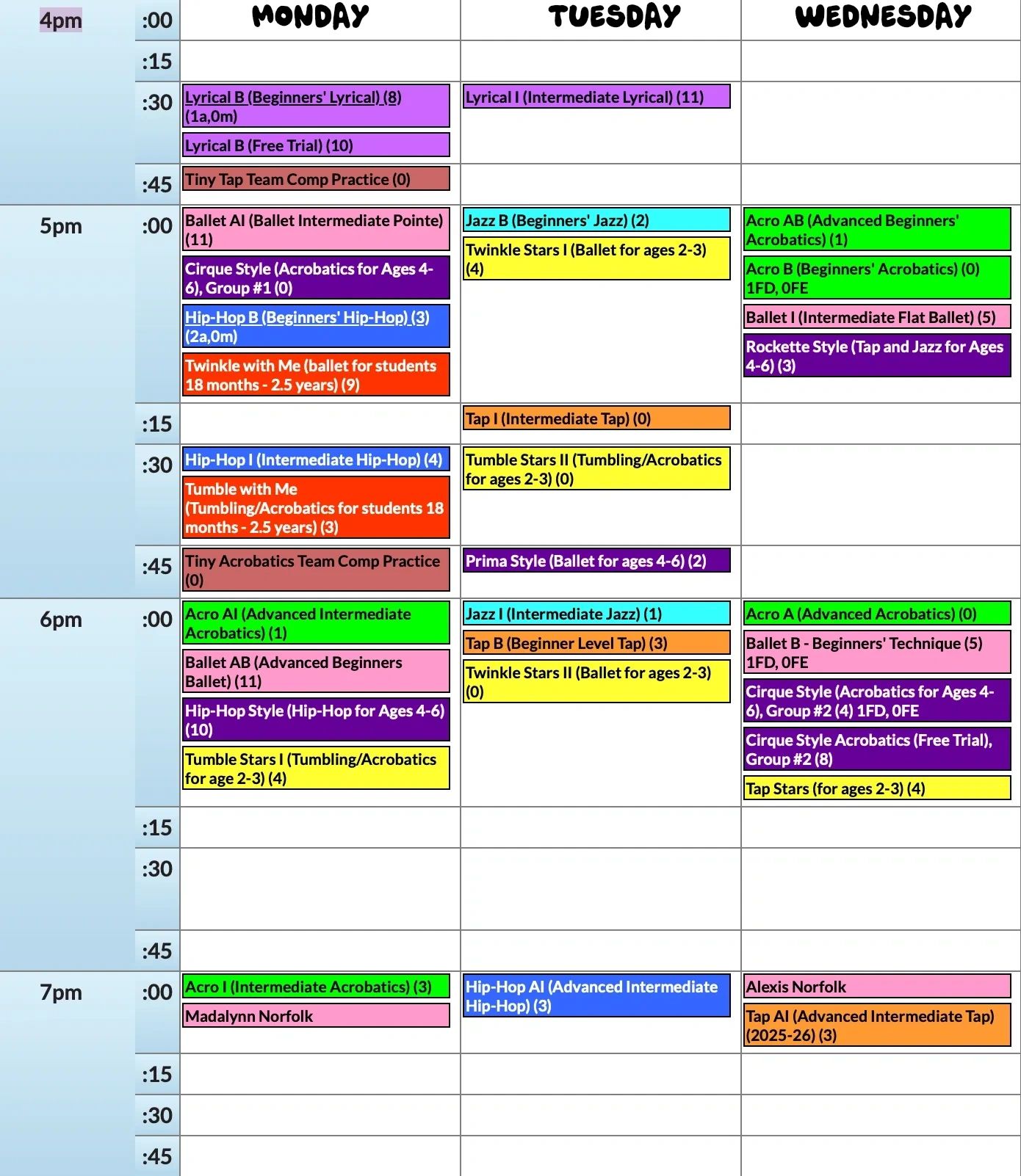 Please Note: We do require dancers to be registered for the dance season by November 1, 2025 in order to be eligible to participate in the dance recital in the spring.